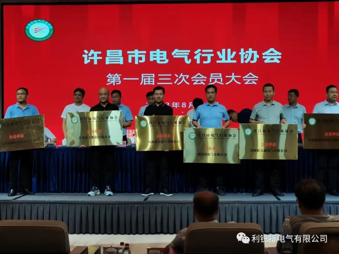 为贯彻党的二十大精神,推动许昌市电气行业高质量发展,加大企业之间的交流与合作,许昌市电气行业协会第一届三次会员大会于2023年8月11日下午三点在许昌瑞贝卡芙蓉园酒店召开,利锐特电气有限公司应邀参加。